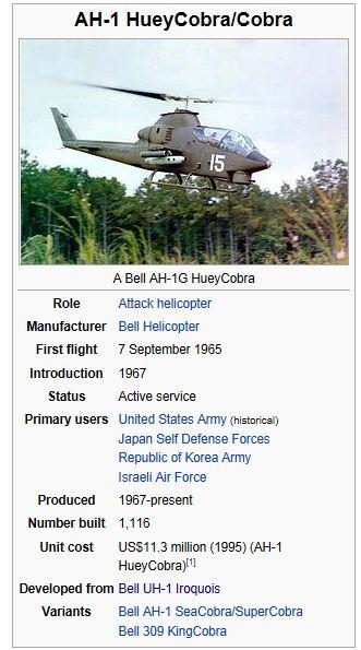AH-1 Cobras were deployed for Operation Urgent Fury, the invasion of Grenada in 1983, flying close-support and helicopter escort missions. Army Cobras participated in Operation Just Cause, the US invasion of Panama in 1989.