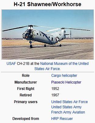 - United States Air Force operated H-21A, H-21B and SH-21B helicopters.