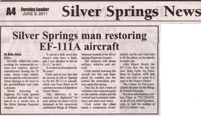 Cactus Air Force's EF-111A Squadron is a team of volunteers dedicated to beautifully restoring Cactus Air Force's EF-111A. This dedicated team is located in Silver Springs, Nevada. They get together every Saturday to work on this legendary aircraft. The team includes: